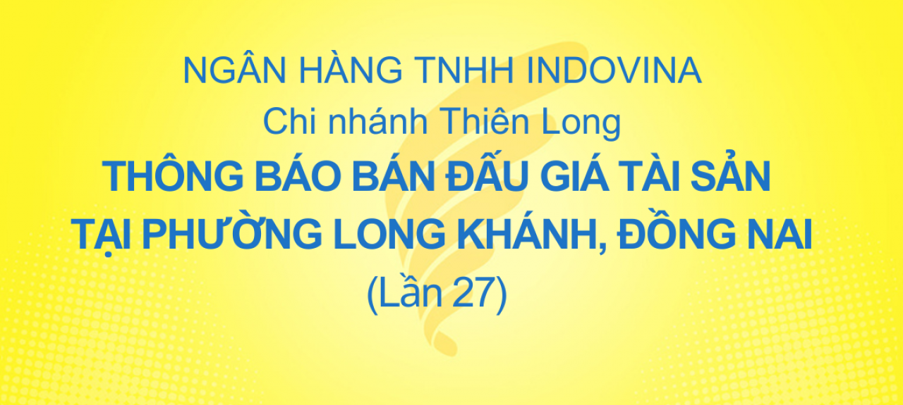 CHI NHÁNH THIÊN LONG - THÔNG BÁO ĐẤU GIÁ TÀI SẢN (LẦN 27)