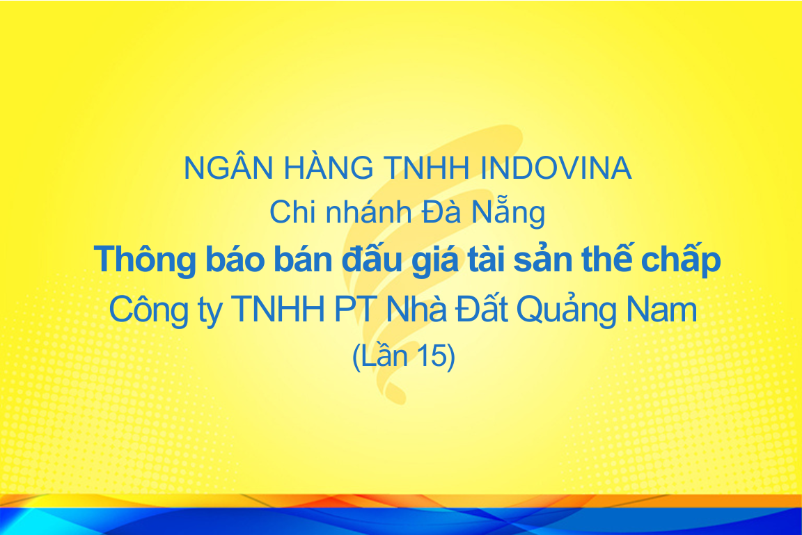 CHI NHÁNH ĐÀ NẴNG - THÔNG BÁO BÁN ĐẤU GIÁ TÀI SẢN THẾ CHẤP (LẦN 15)